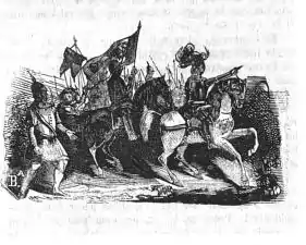 ![]() Castilian knights and soldiers at the time of the Castilian Civil War | |||||||