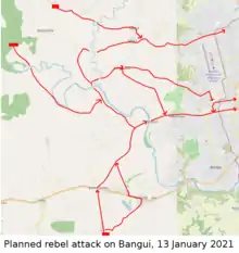 On 13 January 2021 around 200 rebels from Coalition of Patriots for Change attacked Bangui, the capital of the Central African Republic, in an attempt to overthrow the government which resulted in failure.