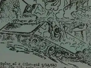 During the early hours of December 28, 1964, elements of the VC 271st Regiment and the 445th Company signaled their main attack on Bình Giã by penetrating the village's eastern perimeter. There, they clashed with members of the South Vietnamese Popular Force militiamen, which numbered about 65 personnel. The militia fighters proved no match for the VC and their overwhelming firepower, so they quickly retreated into underground bunkers, and called for help.[22] Once the village was captured, Colonel Ta Minh Kham, the VC regimental commander, established his command post in the main village church and waited for fresh reinforcements, which came in the form of heavy mortars, machine guns and recoilless rifles.[22] To counter South Vietnamese helicopter assaults, Colonel Kham's troops set up a network of defensive fortifications around the village, with trenches and bunkers protected by land mines and barbed wire. The local Catholic priest, who was also the village chief, sent a bicycle messenger out to the Bà Rịa district headquarters to ask for a relief force.[23] In response, the Bà Rịa district chief sent out elements of two Ranger battalions to retake Bình Giã. On December 29, two companies of the ARVN 33rd Ranger Battalion and a company from the 30th Ranger Battalion were airlifted into area located west of Bình Giã, by helicopters from the U.S. 118th Aviation Company to face an enemy force of unknown size.[15]