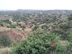 ![]() Blanco Canyon, seen from the west rim, on Highway 82 | |||||||