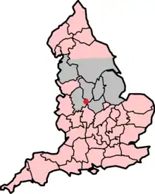 Edward acted quickly against the Marcher Lords, defeating them easily due to a lack of co-ordination amongst them, before moving north to confront Lancaster.[2] The Earl moved from his base at Pontefract, West Yorkshire to block the strategically important crossing of the River Trent at Burton.[4] He arrived in early March 1322, having lost much of his stores to floods en route, and set about fortifying the western end of the bridge, a 36-arch stone structure that was 515 yards (471 m) long and just 15 feet (4.6 m) wide.[3][4][5] Lancaster sent out men to prevent the King from crossing the Trent elsewhere and outmanoeuvring him. Two such men were John de Myner, master forester of Needwood Forest, and Richard de Holland, who broke the bridges at Wychnor and Hamstall Ridware. De Holland was later fined 40 shillings by the King for his actions.[6] De Holland's kinsman Lord Robert de Holland had long been a supporter of Lancaster, was said to be his closest friend, and had raised troops for him to send against the King's men in Cheshire.[7][8] However, on 4 March de Holland received a secret order from the King to join him against Lancaster which he seems to have obeyed, forming a body of troops at Ravensdale Park in Derbyshire ostensibly to reinforce Lancaster's army at Burton.[7]