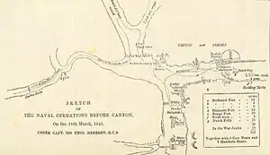 ![]() Map of the naval operations at Canton, 18 March 1841 | |||||||