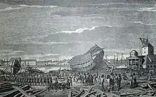 The bombardment included 300 Congreve rockets, which caused fires.[lower-alpha 1] Due to the civilian evacuation, the normal firefighting arrangements were ineffective; over a thousand buildings were burned.[26]