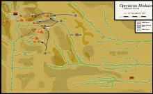 South Africa, which shared a common border with Angola through the contested territory of South West Africa (Namibia), was then determined to prevent FAPLA from gaining control of Mavinga and allowing insurgents of the People's Liberation Army of Namibia (PLAN) to operate in the region.[15] Saludando Octubre prompted the South African Defence Force (SADF) to underpin the defence of Mavinga and launch Operation Moduler with the objective of stopping FAPLA's advance. After weeks of preliminary skirmishes, the two armies met at the Lomba River on 6 September.[16] Throughout September and October, the SADF repulsed several FAPLA attempts to cross the Lomba and destroyed most of the latter's vital bridging equipment.[13] Repeated counterattacks by the SADF's 61 Mechanised Battalion Group resulted in the annihilation of FAPLA's 47 Brigade and the loss of its remaining bridgeheads, sending the remainder of the FAPLA units reeling back towards Cuito Cuanavale.[17][18]