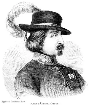 According to József Bánlaky it was Görgei's order to attack the enemy, no matter its size.[11] According to Attila Horváth Görgei did not gave the order to Nagysándor to attack the enemy, but to resist to Russians if they attacked.[12] The cause of this misunderstanding was that the chief of the staff of the I. corps, Major István Pongrácz, in his memoirs written 18 years after the events, remembered wrongly Görgei's order, writing in the newspaper called Hon that Görgei gave him the order to attack the Russians, while the order of his commander sent to him before the battle was only to try to withstand if the enemy attacked.[12] According to Bánlaky Nagysándor discussed with his officers what to do next.[6] Nagysándor and Máriássy sustained Görgei's order, the commander of the cavalry, Colonel István Mesterházy was unsure, Bobich wanted to fight only if the enemy attacked, while Korponay and Pongrácz were against the attack.[11] Seeing this disagreement among his officers, Nagysándor decided not to attack the Russians, but to remain alert all day, and to retreat in silence during the night.[11] According to Máriássy's memoirs, they rode with Nagysándor to the outposts, where they spoke with the officers of the Russian vanguards, who invited them to the five o’clock tea.[11] After the muster parade of the outposts, at 11 a.m., Nagysándor gave up the command to Bobich, and together with Máriássy, Pongrácz and other officers he went in the city, to a restaurant, but they barely started the meal, when they heard the Russian gun shots, signaling the start of the battle, so they immediately rushed to their posts.[11]
