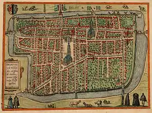 ![]() A 1580 map of Delft by Georg Braun & Frans Hogenberg | |||||||