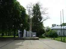 In 1949, the Czechoslovak government erected a memorial and cemetery southeast of the Dukla border crossing, in Vyšný Komárnik, the first liberated village on the territory of (then) Czechoslovakia. It contains the graves of several hundred Soviet and Czechoslovak soldiers. Several other memorials and cemeteries have also been erected in the region.[7]