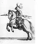 The Spanish cavalry was composed of 53 small companies, assembled into ad hoc squadrons. There were 29 cuirassier companies and 24 arquebusier companies. 4 of the cuirassier companies were composed of veterans, while the rest had been raised, using Walloon recruits, in 1621 and 1622.[3] These latter had performed poorly at the Battle of Wimpfen, so Cordoba was obviously concerned about the flanks of his army.