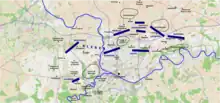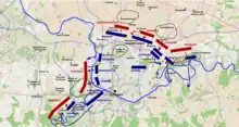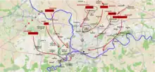 Coburg planned to bring the 12,000 Austrians under his command at Tournai towards Charleroi to join with Orange's and Beaulieu's 40,000 in the theatre for the decisive battle against Jourdan.[21] However, the concentration of Austrian forces on the left wing for a decisive battle created two complications: