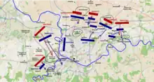 Morlot then attacked on Quosdanovich's front as well as on his right flank via Thumeon. The fighting continued until Morlot's right was uncovered by Grenier's withdrawal from Chassart to Saint-Fiacre. This, coupled with a successful counterattack by Quosdanovich against Morlot's flanking force at Thumeon, forced the French general to withdraw to the south bank of the stream running through Pont-a-Migneloup.[32]