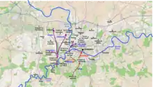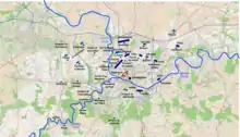Duhesme's infantry of Marceau's vanguard, meanwhile, had driven the defenders of the bridge at Marchienne-au-Pont off, crossed over to the left bank, and taken station in the forest of Moncaux (now the Charleroi suburb of Le Bougnou).[3] Vézu's division advanced to positions between Duhesme and Fromentin. Mayer's division, which was meant to cross east of Duhesme, was unable to do so due to flooding and crossed at Marchienne-au-Pont instead, taking position behind Duhesme.