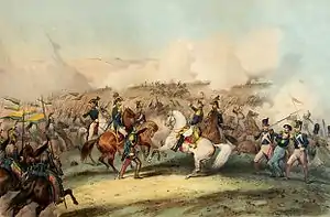 The Battle of Ingavi occurred on November 18, 1841, during the Peruvian-Bolivian War of 1841-1842, in the town of Ingavi, Bolivia. The Bolivian Army, commanded by Jose Ballivian, there met an invading Peruvian Army commanded by Agustín Gamarra, who later died during the battle.