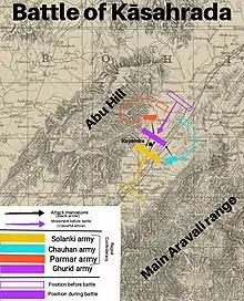 The Battle of Kasahrada, also known as Battle of Kayadara or Battle of Gadararaghatta was fought in 1178 at modern Kasahrada in Sirohi district near Mount Abu in present-day Rajasthan. It was fought between the Rajput Confederacy led by Mularaja II and the invading Ghurid forces led by Muhammad of Ghor, during which the Ghurid forces were signally defeated.
