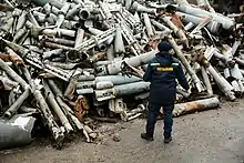 The Security Service of Ukraine stated on 6 March that Russian BM-21 Grads were shelling the Kharkiv Institute of Physics and Technology, which houses a nuclear research facility, and warned it could lead to a large-scale ecological disaster.[103] The International Atomic Energy Agency stated the next day that the nuclear research facility had reportedly been damaged but there was no radiation leak.[104] Local emergency officials stated that at least eight civilians had been killed in the shelling on the city overnight.[105] The Azerbaijani consulate in the city was meanwhile severely damaged[106] and the Albanian consulate was demolished.[107]