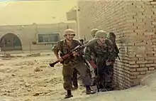 ![]() Iranian soldiers engaged in urban warfare with invading Iraqi troops in Khorramshahr | |||||||||