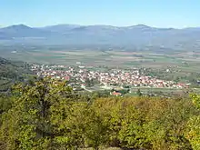 ![]() Lake Kastoria viewed southeast from Korisos. The plains in the background were the area where the German artillery deployed. | |||||||
