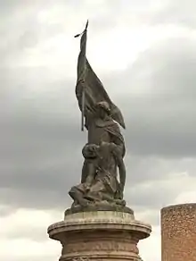 ![]() Sculpture representing James III (killed) and his son James IV, who raises the banner of the Kingdom of Majorca in Llucmajor. | |||||||||