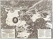 The remains of Krychevsky's army took up positions in a wagon fort. Initial attempts by the Commonwealth army to take the new Cossack positions failed. In the meantime, Pobodailo's troops crossed the river to help their allies, but were defeated by the Commonwealth.[1] After that, the Commonwealth's final assault on the wagon fort succeeded, with the hussars dismounting and taking to battle on foot.[3] Krychevsky, mortally wounded, was taken prisoner.[1] Radziwiłł collected about 40 Cossack banner from the field.[1] Samuel Orgelbrand gave Cossack losses at 3,000 men, 2 artillery pieces and 12 banners.[2]