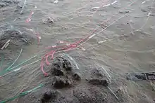 An attempt was made to outflank the trenches on the right where a number of Boers were taken prisoner, but this action was soon blocked by the redeployment of Boer elements.[37] After sunrise, the remnants of the four battalions of the Highland Brigade were unable to advance or retreat due to Boer rifle fire. The only movement at that time was a team led by Lt. Lindsay, who managed to bring the Seaforth's Maxim forward to provide a degree of fire support. Later the Lancers were able to bring their Maxim forward and into action as well.[37] Methuen ordered all available artillery to provide fire support; the howitzers engaged at 4,000 yards (3,700 m) and the three field batteries at a range of 1 mile (1,600 m). The Horse Artillery advanced to the southern flank in an attempt to enfilade the trenches.[37] With all guns engaged, including the 4.7-inch naval gun commanded by Captain Bearcroft RN,[40] the Highlanders were given some respite from the Boer small-arms fire, and some men were able to withdraw. As with the preliminary barrage of the previous evening, most of the shot was however again directed at the facing slopes of the hills rather than the Boer trenches at their foot.[37]