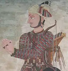 Kalu Pande, Chautaria Mahodam Kirti Shah, and Prithivi Narayan Shah led the first to third groups, respectively.[12] Three groups met at Shubha Ghat, Jaluwa Manjhi, transported them across the Trishuli River, the force also included the brother of the king Dal Mardan Shah, royal preceptor, priest and astrologers, who were given weapons.[12] Nuwakot was guarded by few soldiers but they were on the alert to fight back the Gorkhali forces and they were on defensive positions.[12] They did not have much advanced war materials, only a few guns, and they had the traditional weapons like bow and arrows, Khundas, swords, and spears.[12] This was because it was hard to obtain guns and ammo and thus they were used in small quantities.[12] Indra Jātrā, one of the biggest festival, was being celebrated by the people of Kantipur and consequently, Jayant Rana, did not get any troops.[13]