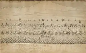 - Before the battle, Sehested had been replaced by vice admiral Just Juel and his flagship, Justitia, was now commanding the rear guard of the Danish fleet. In the battle of 8 August vice admiral Juel was killed.[6]
