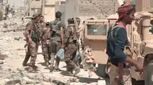 The Battle of Raqqa (2017), also known as the Second Battle of Raqqa, was the fifth and final phase of the Raqqa campaign (2016–2017) launched by the Syrian Democratic Forces (SDF) against the Islamic State (ISIL) with an aim to seize the city of Raqqa, the de facto capital of ISIL since 2014. The battle began on 6 June 2017, and was supported by airstrikes and ground troops from the US-led coalition.[45] The operation was named the "Great Battle" by the SDF.[46] It concluded on 17 October 2017, with the SDF fully capturing the city of Raqqa.