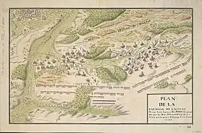 Once Luxembourg realised this was not a feint, he committed his reserves to the battle for Casteau, which lasted over five hours, during which the church, mill and chateau changed hands several times.[24] Both sides suffered heavy casualties in fierce hand-to-hand fighting; Luxembourg was wounded, while William was reportedly saved by future Marshal Hendrik Overkirk, who killed a French dragoon with his pistol against the Prince's chest.[25] Around 19:00, William ordered his infantry in Casteau to withdraw, covered by the Spanish cavalry and a rearguard in Casteau which then did the same, apart from a regiment of French Huguenots exiles holding the chateau. Commanded by a former French regular officer, M de La Roque-Servière, they continued fighting until over-run just after 21:00, when the fight around Casteau ended.[26] By then it had become completely dark and even at Saint-Dénis, where neither side had gained further ground, the fire died down around 22:00.[27]