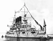![]() Shikishima firing during the battle | |||||||