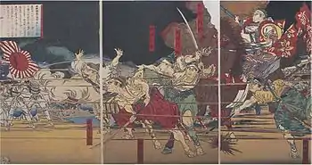 The Battle of Shiroyama (城山の戦い, Shiroyama no tatakai) took place on 24 September 1877, in Kagoshima, Japan.[3] It was the final battle of the Satsuma Rebellion, where the heavily outnumbered samurai under Saigō Takamori made their last stand against Imperial Japanese Army troops under the command of General Yamagata Aritomo and Admiral Kawamura Sumiyoshi. The battle culminated in the annihilation of Saigō and his army, marking the end of the Satsuma Rebellion. The Imperial Army's victory consolidated their power, and the Satsuma Rebellion was the last instance of internal mutiny seen in the Empire of Japan.