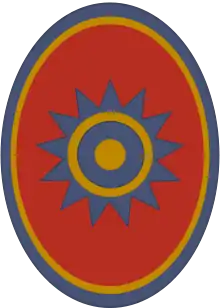 At this time of Strasbourg, the Alamanni confederation appears to have been under the presidency of two paramount kings, Chnodomar and Westralp.[16] Chnodomar was the driving force. A man of prodigious stature, strength and energy, he was nicknamed Gigas ("the Giant") by the Romans.[17] He was a formidable sight in his "flashing" helmet (probably gold-leafed) and full parade armour. He is described by Ammianus as the "evil mastermind" behind the invasion of Gaul.[18] Under the paramount king were 7 other kings (reges). It is possible that the petty kings (reguli) mentioned by Ammianus were the rulers of the pagi. Underneath the regal class were the nobles (called optimates by the Romans) and warriors (armati). The warriors consisted of professional warbands and levies of free men.[19] Each nobleman could raise an average of about 50 warriors.[20]