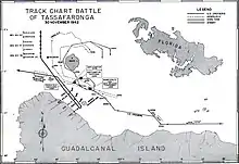The Battle of Tassafaronga, sometimes referred to as the Fourth Battle of Savo Island or in Japanese sources as the Battle of Lunga Point (ルンガ沖夜戦, "Night Battle off Lunga"), was a nighttime naval battle that took place on 30 November 1942 between United States Navy and Imperial Japanese Navy warships during the Guadalcanal campaign. The battle took place in Ironbottom Sound near Tassafaronga Point on Guadalcanal.