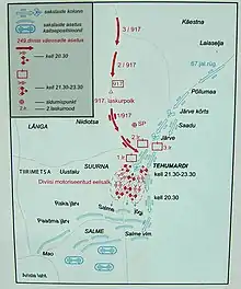 The Battle of Tehumardi (Estonian: Tehumardi öölahing, Russian: Бой у Техумарди, German Schlacht von Tehumardi) was a battle related to the Moonsund Operation during World War II. Soviet soldiers fought German troops occupying Tehumardi. It was one of the most brutal engagements during the fighting on the Estonian island of Saaremaa (Oesel) in 1944.