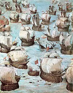 In the first engagement between large fleets of carracks and galleons operating at great distances from the mainland,[6] the mercenary fleet under Filippo di Piero Strozzi was severely defeated by a squadron under Álvaro de Bazán.[7] The Spanish victory resulted in the rapid Spanish conquest of the Azores, completing the incorporation of Portugal into the Spanish Empire.[8]