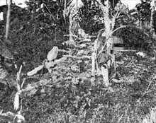 On 6 March, the Japanese initially assessed that the defensive line was held by some 3,000 soldiers with a number of guns, but after the interrogation of a captured prisoner of war they found out that the defenders were considerably less than their assessment.[32] The Japanese themselves had around 1,000 men in the pass, and still had an advantage in mortars and armor.[30] There were also a large number of Japanese air raids, with hundreds of bombs being dropped, destroying vehicles and eroding Dutch morale.[33] The initial infantry attacks on 6 March were launched against the western section of the defensive line at around 5:30 AM, which was initially repelled, and so was a second assault which was launched following an air raid. Japanese commanders, however, followed with a third wave supported by mortar fire and three tanks, which was successful in breaking the two infantry companies holding the section under attack.[34] During the attacks, the Japanese had taken advantage of a thick fog in order to surprise the defenders.[35] Between 30 and 50 were killed in combat from the two companies, and a further 75 were captured and massacred by the Japanese, leaving just six survivors. Later tallying in 1948 calculated 120 soldiers killed from the two companies from both combat and the massacre.[36] Around midday, forward Japanese patrols had exchanged some machine gun fire with soldiers in the unfinished fortifications.[37] In the afternoon, the Japanese had managed to outflank the defenses, launching an attack against the defenders which was pushed back by a Dutch counterattack. However, de Veer was killed in the counterattack and the fortifications were evacuated after the assault was repelled, and the remaining defenders were ordered to withdraw to Lembang.[38]