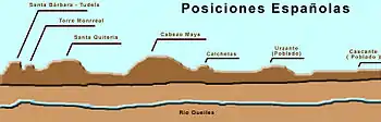 These movements threatened Castaños with entrapment between these two armies. To avoid this Castaños withdrew to Tudela. He decided to defend a line 17 kilometres (11 mi) long stretching west from Tudela along the Ebro, then along the Queiles River to Cascante and finally to Tarazona at the foot of the Moncayo Massif.