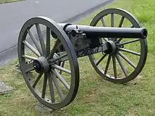 One of the Union mountain howitzers fired on the ferry at Van Buren, killing the horse powering it, although the soldiers on board were able to escape across the river.[49] Union troops also captured the steamer Violet in Van Buren, and took three ammunition wagons and twenty-seven wagons with supplies during the chase of the other steamboats.[50] Rose Douglass, Key West, and Frederick Notrebe were returned to Van Buren[49] by the early afternoon.[51] While Blunt and Herron discussed the prospects of making an attack across the river to Fort Smith, the Confederates brought up troops on the far side of the river.[51] At Fort Smith, Hindman had learned of the Union attack at about 10:00 am. He ordered Shaver's brigade, which was 2 mi (3 km) away, to go to Fort Smith, and ordered Brigadier General Daniel M. Frost, who was with his division 10 mi (16 km) toward Little Rock, to send a detachment of infantry and artillery to Strain's Landing and the rest of his force to Fort Smith. By the time Shaver reached Fort Smith, Union troops had already held Van Buren for about two and a half hours. Shaver had West's Arkansas Battery fire on the town[52] with four 6-pounder smoothbore cannons.[53] Herron viewed this as an outrage, as the town sheltered many civilians as well as the Union troops.[52] The Confederates fired for two hours, and Union artillery was brought up to support the infantry. The 1st Kansas Battery deployed on the hill overlooking the river and fired into Shaver's position at about 4:00 pm[54] with four 10-pounder Parrott rifles.[53] Shaver had not expected to encounter Union artillery, and with Union overshots landing among Shaler's Arkansas Infantry Regiment, ordered a withdrawal. The Union artillery did not detect the retreat and continued firing, while the Union infantry completed its march to Van Buren at about 7:00 pm.[54]