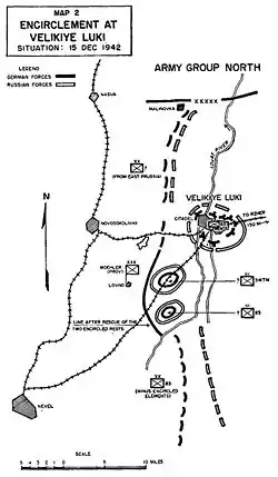 The Battle of Velikiye Luki, also named Velikiye Luki offensive operation (Russian: Великолукская наступательная операция), started with the attack by the forces of the Red Army's Kalinin Front against the Wehrmacht's 3rd Panzer Army during the Winter Campaign of 1942–1943 with the objective of liberating the Russian city of Velikiye Luki as a previous part of the northern pincer of the Rzhev-Sychevka Strategic Offensive Operation (Operation Mars).