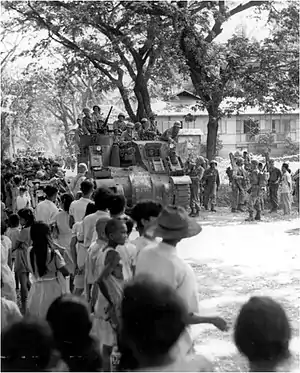 The Battle of Visayas (Filipino: Labanan sa Visayas; Visayan languages: Gubat sa Kabisay-an) was fought by U.S. forces and Filipino guerrillas against the Japanese from 18 March – 15 August 1945, in a series of actions officially designated as Operations Victor I and II, and part of the campaign for the liberation of the Philippines during World War II. The battle was waged to complete the recapture of the central portions south of the archipelago and secure them from remaining Japanese forces.