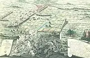 Stanisław Leszczyński's coronation, as Stanisław I of Poland, was completed on 4 October, with no further interference from Augustus II's allies.[56] After some smaller skirmishes outside, or near, Warsaw, among them an attempt made to destroy the recently Swedish-constructed bridge connecting Warsaw and Praga,[57] peace between Sweden and Poland was finally established on 28 November.[58] These developments allowed Charles XII to break camp on 9 January 1706 with his 20,000 men, and march towards the Russians at Grodno, where he partly encircled the city and starved them out.[59] Meanwhile, the Saxon army under Schulenburg was defeated by Rehnskiöld at the Battle of Fraustadt. This would result in a Swedish invasion of Saxony and the Treaty of Altranstädt (1706), by which Augustus II renounced all his claims to the Polish throne.[60]