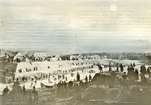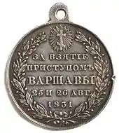 Unable to capture Warsaw by a frontal assault, von Diebitsch devised a plan to outflank it and enter the city from the west.[4] In early 1831 he sent his forces upstream on the Vistula, where the Russian divisions were to cross the river and head back north, towards Warsaw.[4] The new plan was thwarted by the Polish defence in three successive battles around Wawer, Dębe Wielkie and Iganie.[4] The Russians withdrew towards Siedlce,[4] where von Diebitsch fell ill and died of cholera.[5][note 2]