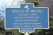 The Battle of Wilton was a battle fought in 1693 in Wilton, New York between Colonial Militia and allied Native forces on one hand and French forces and their Native allies as part of King William's War.