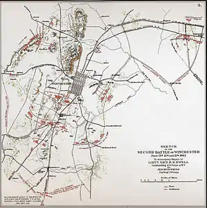 ![]() Sketch of the Second Battle of Winchester, by Jedediah Hotchkiss. | |||||||