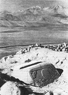 The plinth of Chinese Monument set by the Lake Yashilkul, photoed by the Russian in the 19th century.