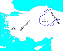 ![]() Halys River in the border regions of the Lydian and Median kingdoms in the early 6th century BC | |||||||