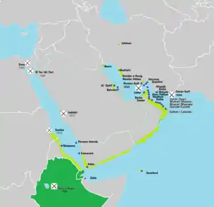 In February 1554, the Portuguese dispatched from Goa six galleons, six caravels, 25 foists, and 1,200 Portuguese soldiers under the command of Dom Fernando de Meneses, son of the Viceroy, tasked to blockade the mouth of the Red Sea and collect information on any Ottoman movements. Throughout the month of March the Portuguese sighted not a single merchant ship crossing the Bab-el-Mandeb, presumably because the presence of the Portuguese fleet had discouraged any voyages that season.[2] In April the expedition sailed to Muscat, where part of the fleet was left to spend the winter ("winter" meaning the monsoon season) while Dom Fernando took the oarships, a galleon, and several merchantships to Hormuz, to replace Dom Antão de Noronha with Bernardim de Sousa as the captain of that fortress. When the westerly winds started blowing in July, the galleon was sent back and Dom Fernando sent 3 small craft (catures) of native fishermen to scout the Shatt al-Arab for any Turkish galleys. The fishermen informed the Portuguese that Moradobec (Murat Reis) had been replaced by Alecheluby (Seydi Ali), and was about to set sail to Suez with 15 galleys.[2]
