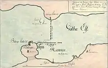 The Swedes had at this time a crew of around 360 men. These men had been drawn from two companies from the Älvsborg Regiment, a company from the Saxon Infantry Regiment, as well as from the fortress' regular artillery detachment. They were all under the command of Johan Abraham Lillie.[36] The Swedish artillery amounted to around 90 pieces, they all varied in caliber. Mortars and howitzers were also used.[37]