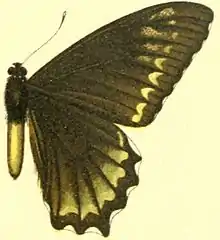 - Battus madyes tucumanus (Rothschild & Jordan, 1906) (north-western Argentina) Möhn, 1999, Butterflies of the World 5: 6, plate 8, figures 3–4.Like madyes, but the apex of the forewing beneath not washed over with yellow; hindwing beneath smoky brown.