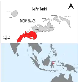 Batudaka is an island of the Central Sulawesi province, located in the Gulf of Tomini. The largest island in the Togian archipelago, it has a land area of over 110 square kilometers with smaller islands) and is divided administratively into villages which form the Batudaka District of the Tojo Una-Una Regency.