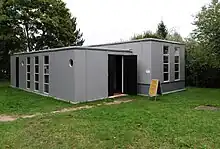 Today, the Gropius and Moholy-Nagy Masters' Houses, which were destroyed during the war, have been rebuilt as abstract reinterpretations of the original architecture at the suggestion of the British architect David Chipperfield under the direction of the Berlin office Bruno-Fioretti-Marquez. The interior walls were designed by conceptual artist Olaf Nicolai with different types of plaster and shades of white, creating a changing impression depending on the incidence of light.[18] The official reopening of the Masters' Houses was carried out by the Federal President of Germany, Gauck, on 16 May 2014.[19] The earlier debate about whether the houses should be reconstructed true to the original has now become obsolete.[20]