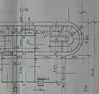 Round Staircase and other typical Bauhaus construction elements, Bauhaus proportions, on this original Floor plan from August 1933 in Budapest.
